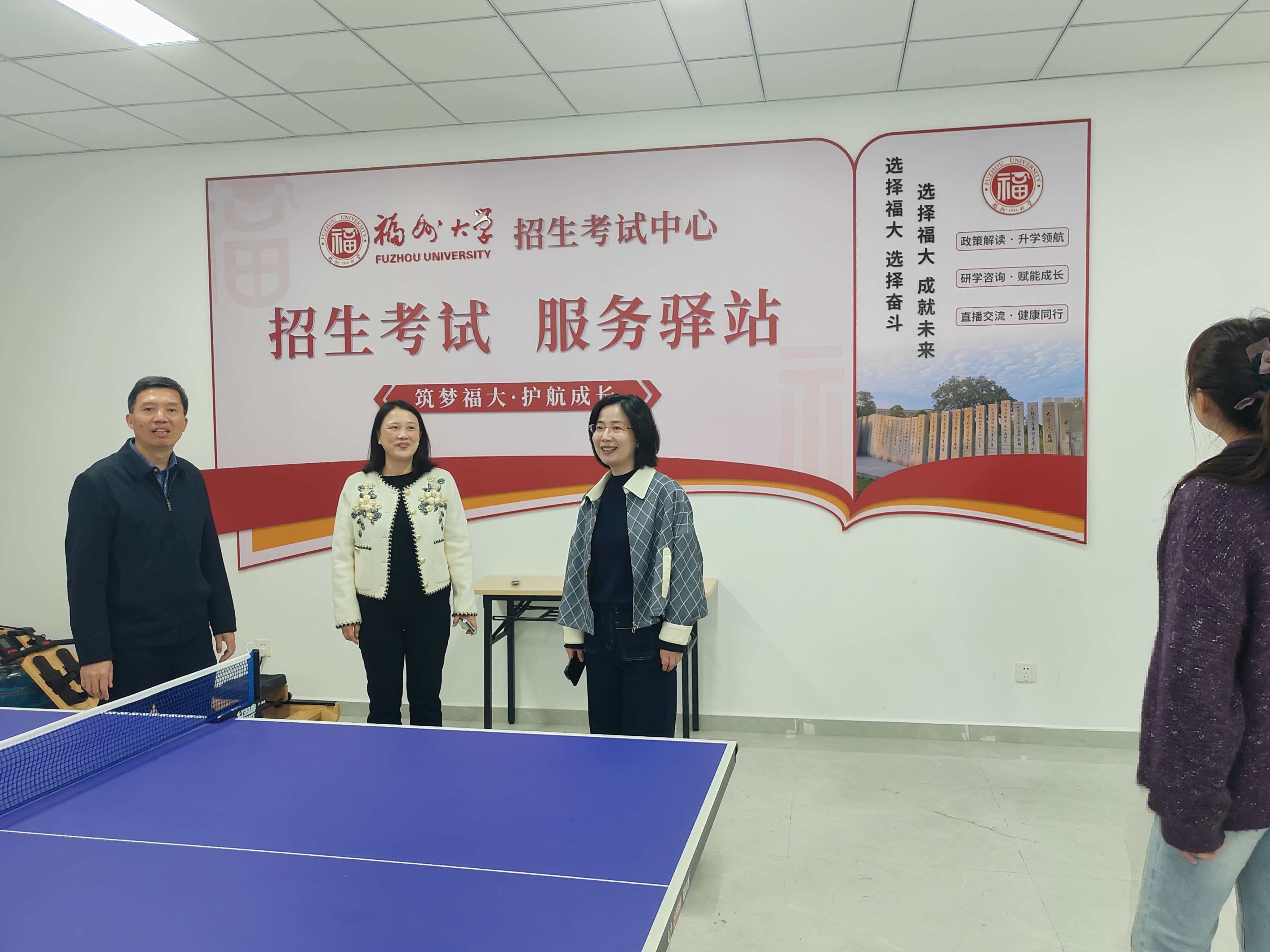 调研期间,黄滨书记一行实地参观了 “招生考试 服务驿站”,重点了解驿站主要功能,包括接待中学来校研学、开展讲座、文体交流、直播咨询等工作,以及融入健康理念、打造健康党支部的相关情况,对驿站在服务考生、优化办公环境、凝聚支部活力等方面取得的成效给予肯定。